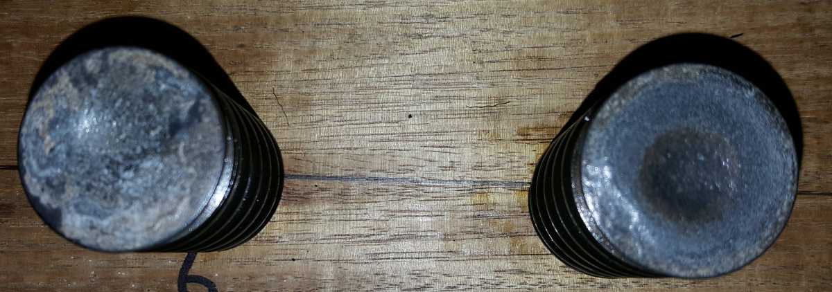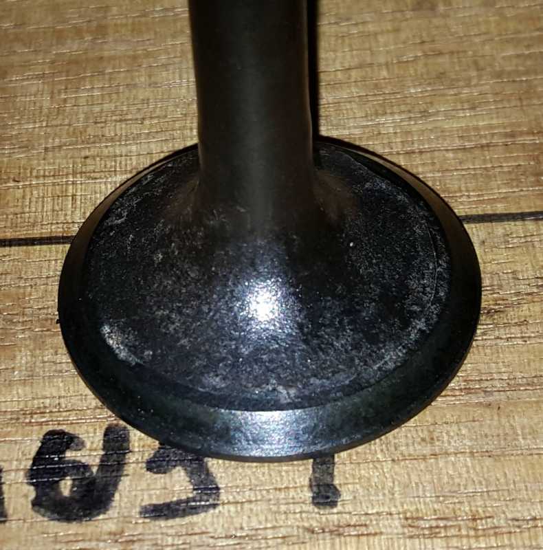 Here are the exhaust valves (2 only)that have been hit with a brass wire wheel. That build up on the head of the valve will not budge.