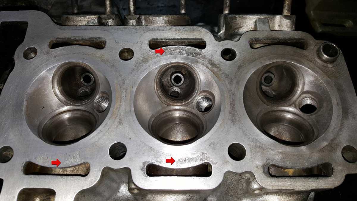The head surface is a bit RS with the corossion but a resurface will most likely see it through. The pitting at the #2 exhaust port may need to be welded to reclaim it without removing too much metal.