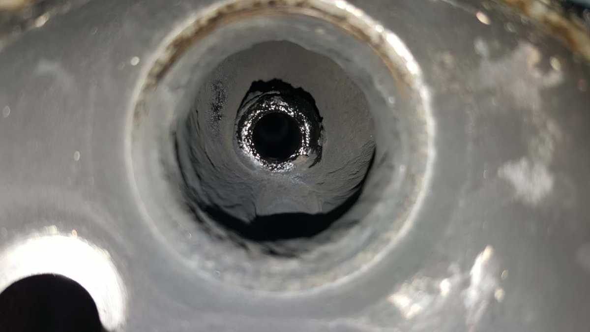 These are the 'journals' I think are clogging up. These journals go up into the cylinder head cover. For those of you with the 'Clean System' and get vented out the top of the cover. In my case it goes nowhere, maybe it recirculates. Two photos one of a journal which is not too bad and the other which looks much narrower due to the build up. Wondering if this is a cause of uneven air fuel mixture??