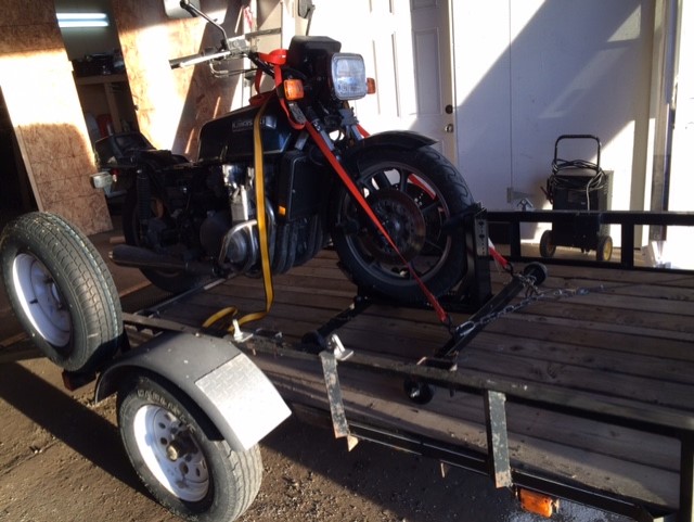 And I need to be able to do it by myself. Two of my KZ's don't run. I had to take my MV back to the dealership several times and so getting it on the trailer , I would start the engine , into first gear and idle the bike up the ramp into a wheel chock. It weighs 420 lbs.