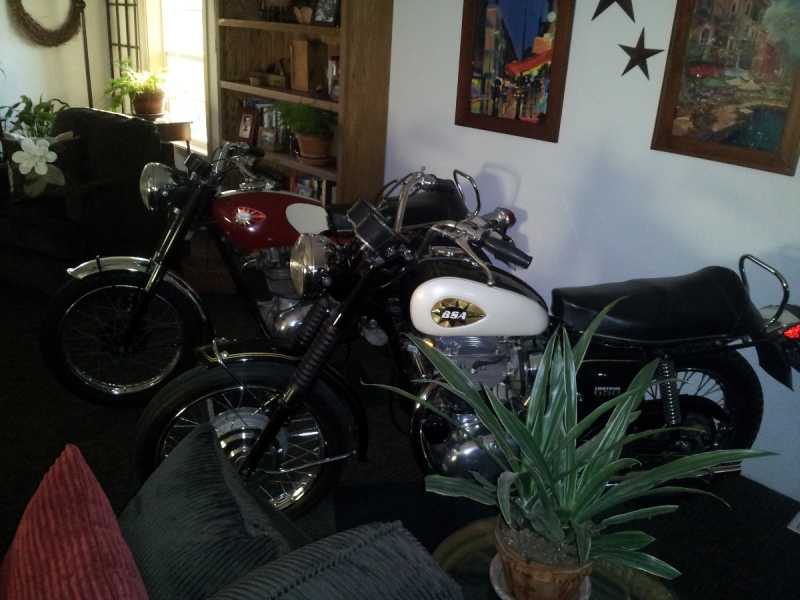1968 BSA Shooting Star, 1970 BSA 650 Lightning, 1974 Kawasaki W3, 1976 KZ900 A4, 1979 KZ750 B4, 1979 KZ750 B4 Trike, 1981 KZ1300, 1982 KZ1100 Spectre, 1985 Kawasaki ZN1300, 2000 Honda Valkyrie Tourer, 2009 Yamaha RoadLiner S
